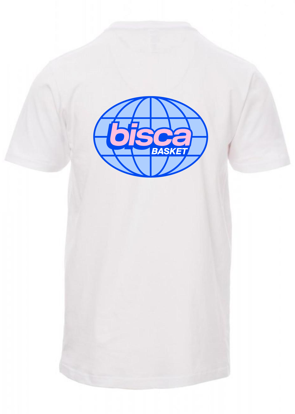 T-shirt blanc, encolure ras le cou et manches courtes, col en bord côtes mixte spandex de 1,5 cm avec couture rabattue sur le devant, ruban de renfort d’épaule à épaule dans couleur en contraste sur le col, coutures stretch, couture latérale. Logo au coeur et au dos.